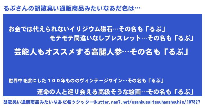 | 男性向けラノベタイトル風あだ名 | 『Re:るぶから始める異世界生活』 |