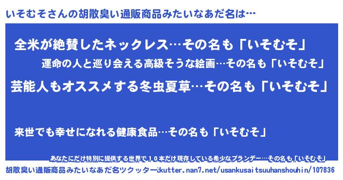 | 意味不明あだ名 | 『つくし科いそむそ属』『自称いそむそ』 |