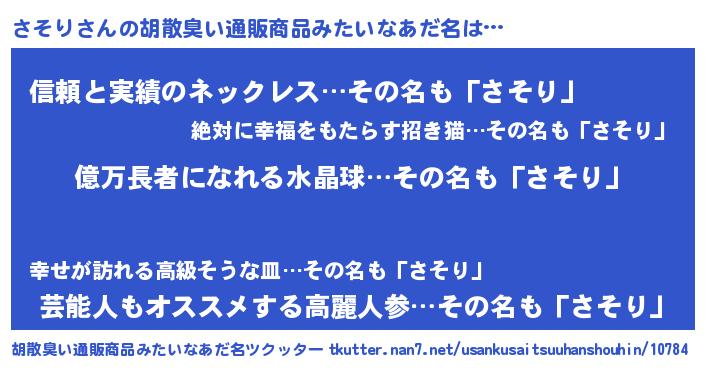 | 意味不明あだ名 | 『ペロリンさそり』『ヨモギ科さそり属』 |
