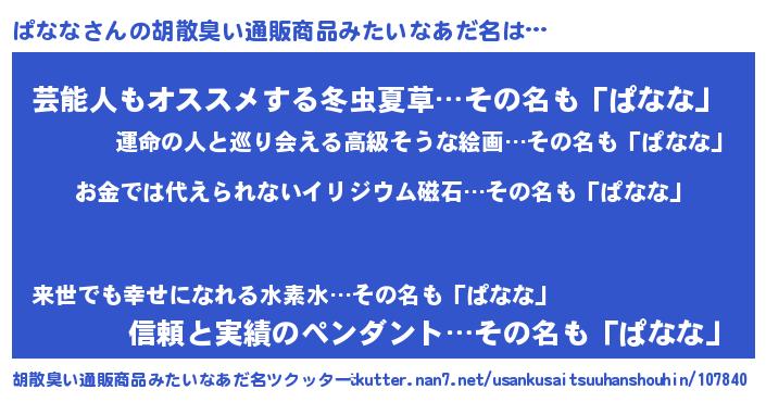| ヒーロー風カッコイイあだ名 | 『慈愛の使者ぱなな』『最強戦士パナナ』 |