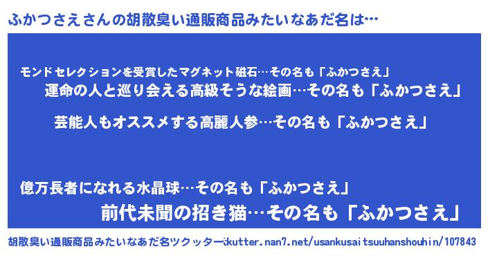 | ヘコむあだ名 | 『ふかつさえ(笑)』『酢こんぶ』 |
