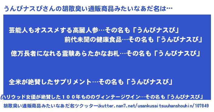 | 伝説のあだ名 | 『封印されしスナイパーうんぴナスぴ』 |