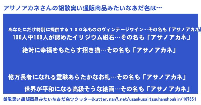 | ヘコむあだ名 | 『アサノアカネ(小並感)』『レバニラ』 |