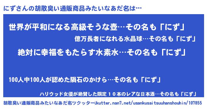 | ヘコむあだ名 | 『にず(震え声)』『なまこ酢』 |