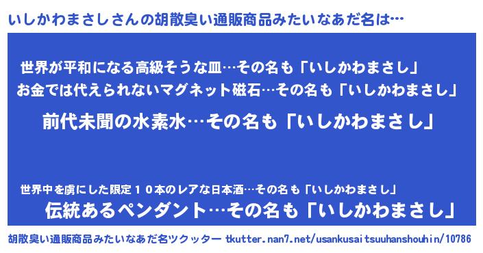 | 意味不明あだ名 | 『永久保存いしかわまさし』 |