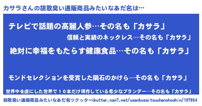 | 意味不明あだ名 | 『永久保存カサラ』『自称カサラ』 |