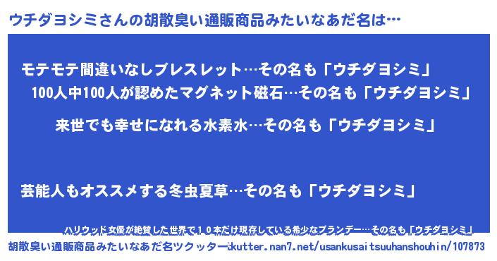 | ヘコむあだ名 | 『ウチダヨシミ(苦笑)』『ウチにゅー』 |