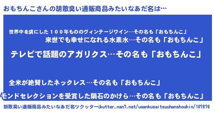 | 意味不明あだ名 | 『自称おもちんこ』『永久保存おもちんこ』 |