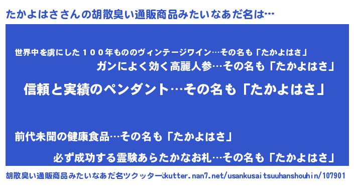 | ヘコむあだ名 | 『たかっちょ』『たかにゅー』『牛乳』 |
