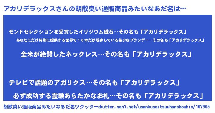 | 意味不明あだ名 | 『とにかく怪しいアカリデラックス』 |