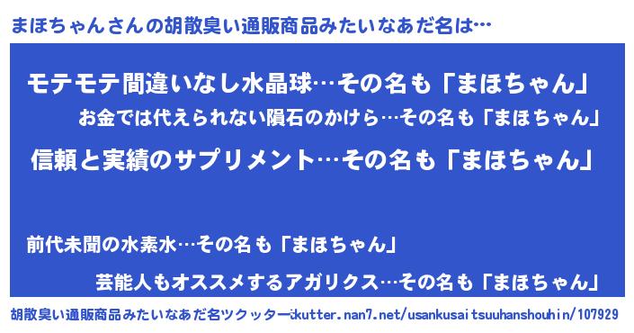 | ピコ太郎風あだ名 | 『マホ一郎』『マコ史郎』『ママ太郎』 |