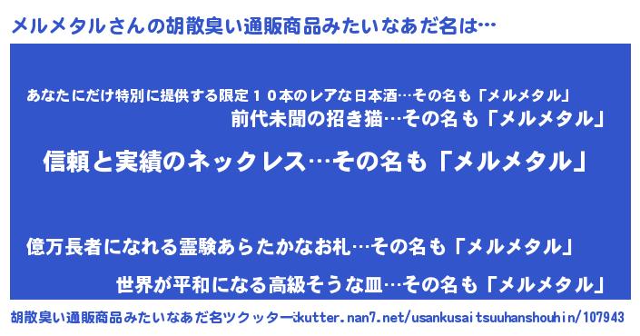 | ヘコむあだ名 | 『メルっぺ』『酢こんぶ』『メルにー』 |