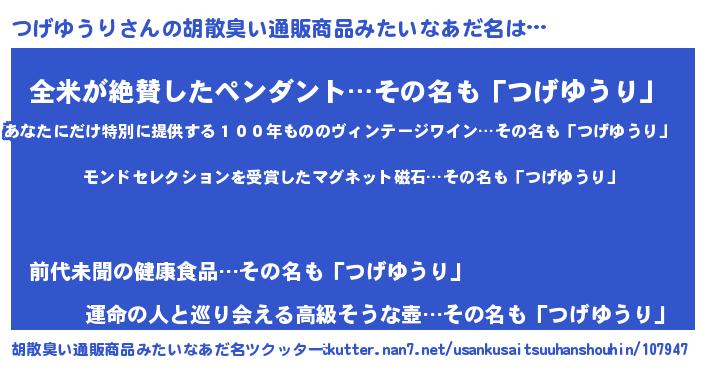 | ヘコむあだ名 | 『つげを』『豆乳』『つげゆうり(笑)』 |