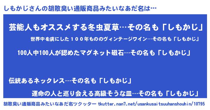 | ヘコむあだ名 | 『牛乳』『しもお』『しもにゅー』 |