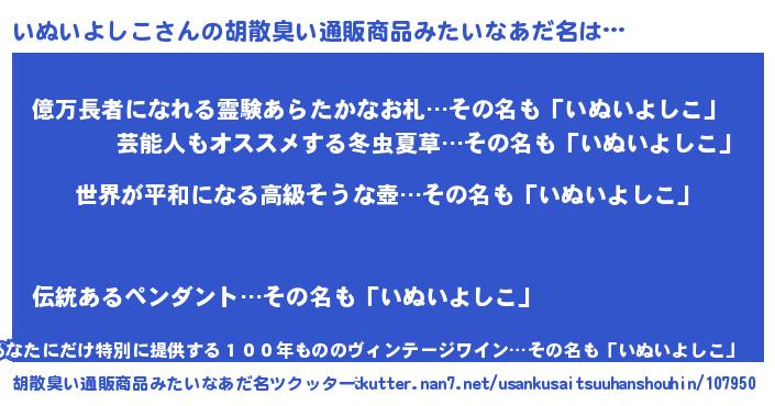 | 恥ずかしいあだ名 | 『いぬっちょ』『プリティーいぬいよしこ』 |
