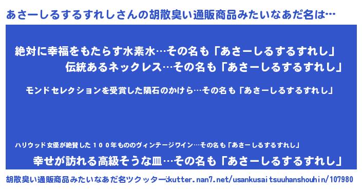 | ヘコむあだ名 | 『あさーしるするすれし(遠い目)』『牛乳』 |