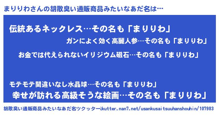 | ヘコむあだ名 | 『まりっぺ』『豆乳』『まりにー』 |