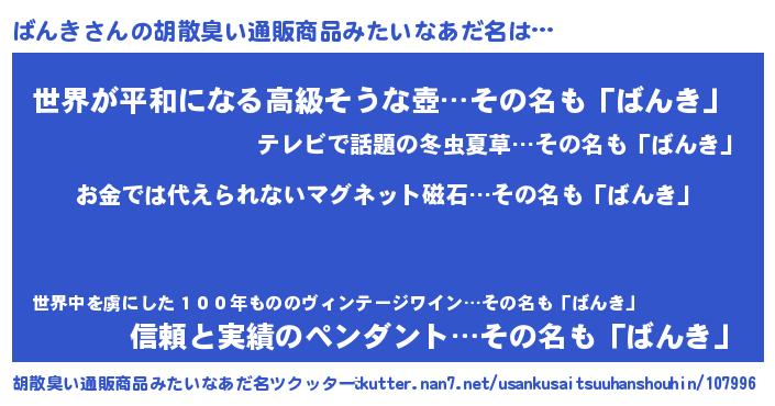 | ヒーロー風カッコイイあだ名 | 『愛の使者ばんき』『ウルトラばんきマン』 |