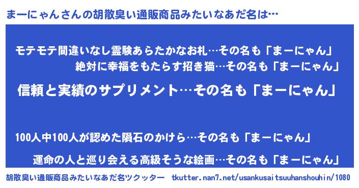 | 意味不明あだ名 | 『とにかく怪しいまーにゃん』 |