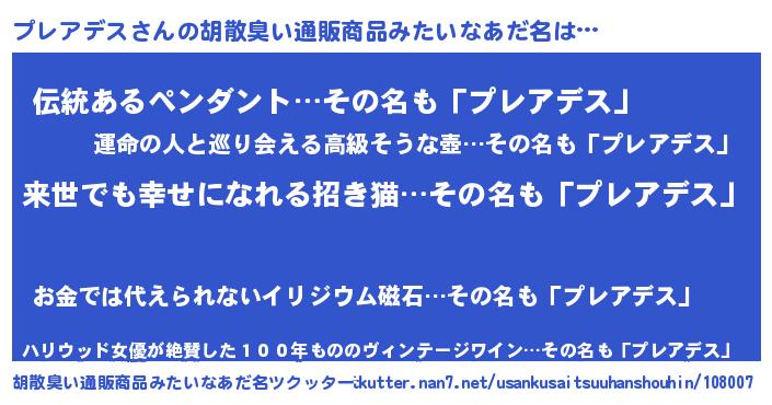 | 伝説のあだ名 | 『古より伝わる吟遊詩人プレアデス』 |