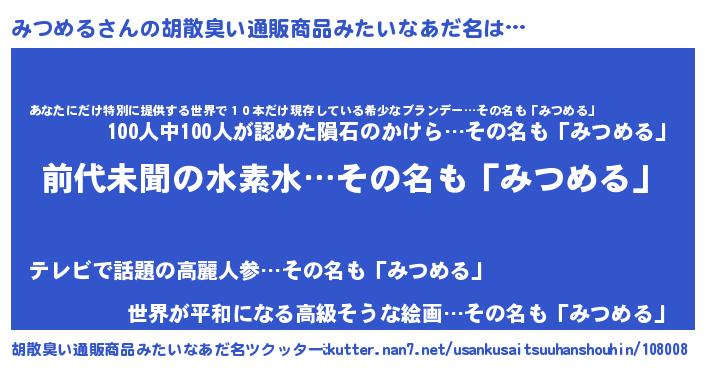 | 意味不明あだ名 | 『永久保存みつめる』『自称みつめる』 |
