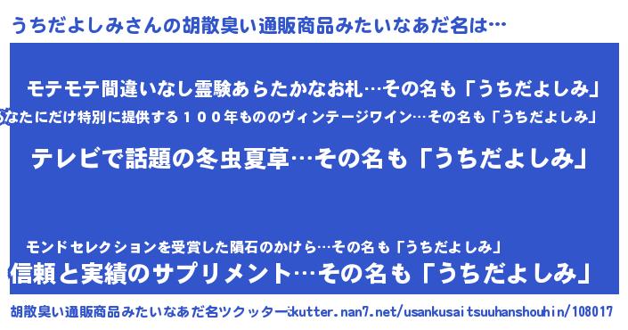 | 肩書あだ名 | 『うちだよしみ総統』『うちだよしみ店長』 |