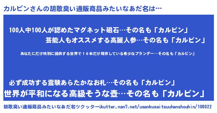 | 意味不明あだ名 | 『住所不定無職カルビン(77歳)』 |