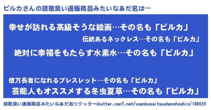 | ヘコむあだ名 | 『ビルカ(苦笑)』『牛乳』 |