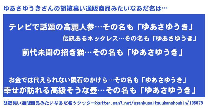 | 欧米人風あだ名 | 『ゆあさゆうき・ステッグマイヤー』 |