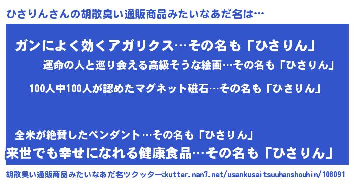 | ヒーロー風カッコイイあだ名 | 『正義の使者ひさりん』『ネオヒサリン』 |