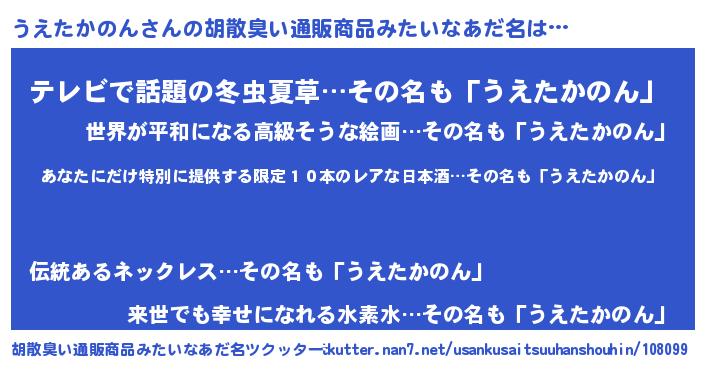| ヘコむあだ名 | 『うえたかのん(爆)』『豆乳』 |