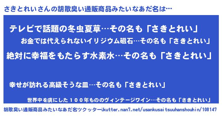 | ヘコむあだ名 | 『さきとれい(遠い目)』『レバニラ』 |