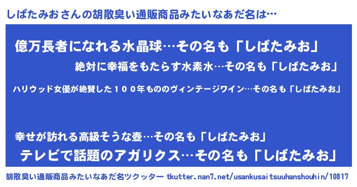 | 意味不明あだ名 | 『住所不定無職しばたみお(9歳)』 |