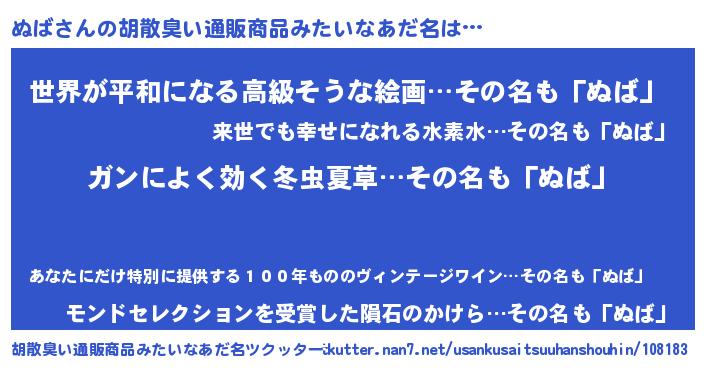 | ヘコむあだ名 | 『つくし』『ぬば(笑)』『ぬばにゅー』 |