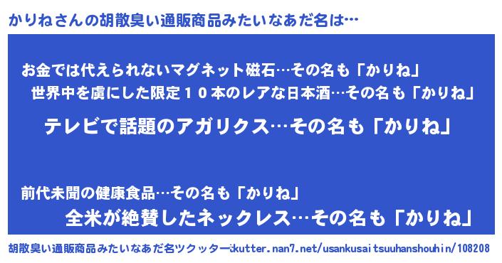 | 意味不明あだ名 | 『自称かりね』『眠気覚ましガムかりね味』 |