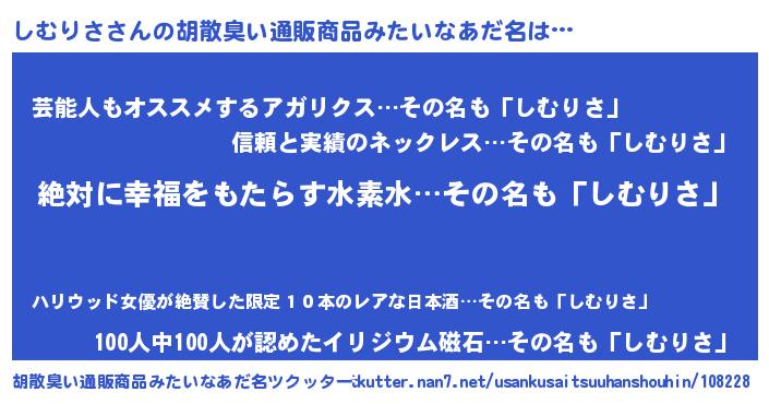 | 意味不明あだ名 | 『永久保存しむりさ』『自称しむりさ』 |