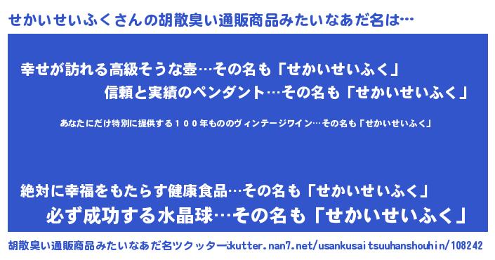 | ヘコむあだ名 | 『酢こんぶ』『せかにー』『せかお』 |