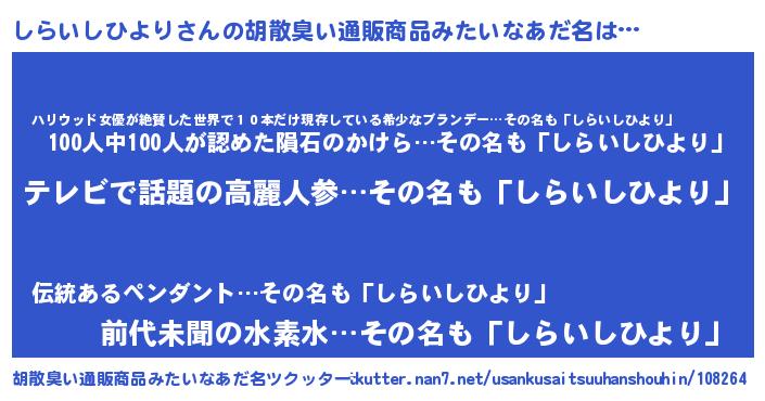 | 意味不明あだ名 | 『自称しらいしひより』 |