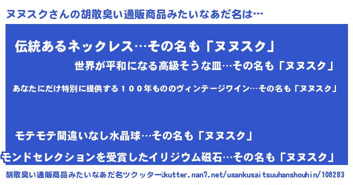 | ヒーロー風カッコイイあだ名 | 『仮面ヌヌダー』『幻影騎士ヌヌ』 |