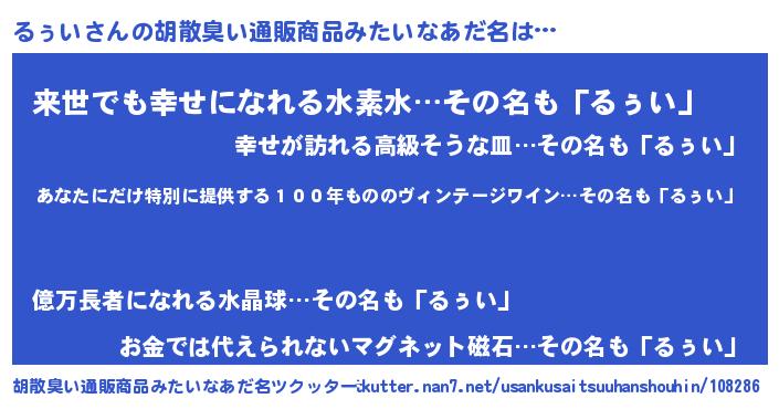| 意味不明あだ名 | 『住所不定無職るぅい(12歳)』 |