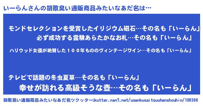 | 男性向けラノベタイトル風あだ名 | 『緋弾のイーラン』 |