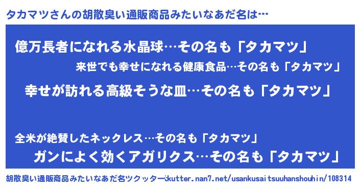 | 意味不明あだ名 | 『タカマツフォーエバー』『自称タカマツ』 |
