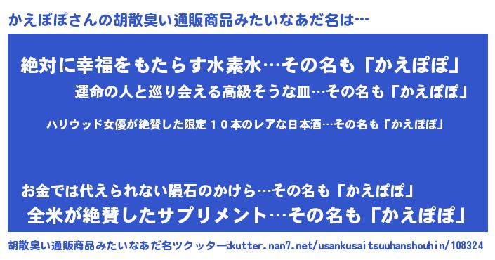 | 欧米人風あだ名 | 『ダレノガレかえぽぽ』 |