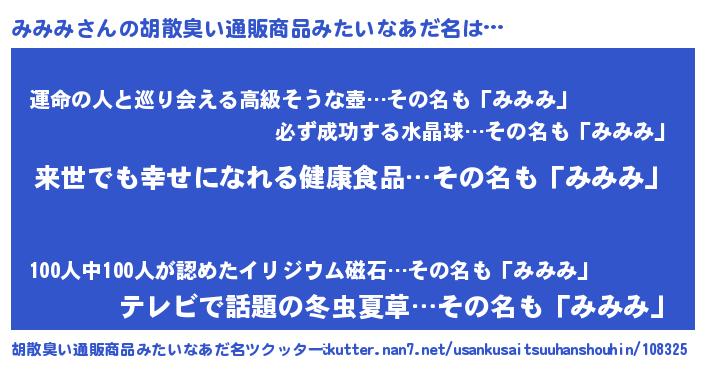| 意味不明あだ名 | 『永久保存みみみ』『みみみフォーエバー』 |