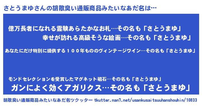| 意味不明あだ名 | 『ニラ科さとうまゆ属』『自称さとうまゆ』 |