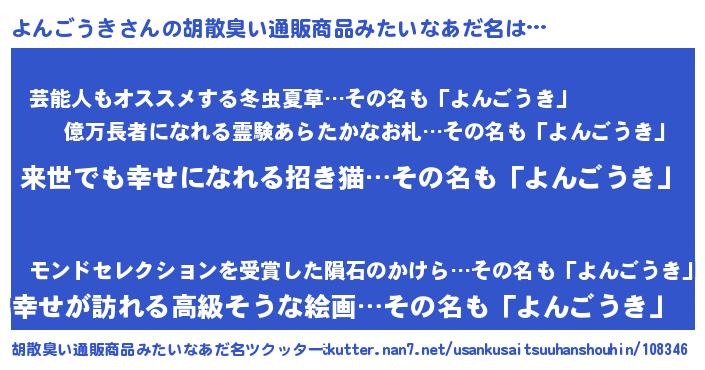 | 意味不明あだ名 | 『永久保存よんごうき』『自称よんごうき』 |