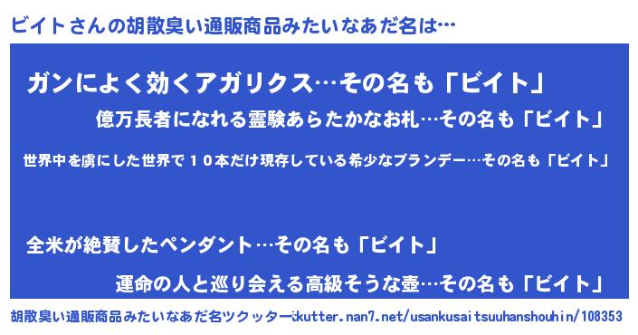 | 意味不明あだ名 | 『住所不定無職ビイト(95歳)』『自称ビイト』 |