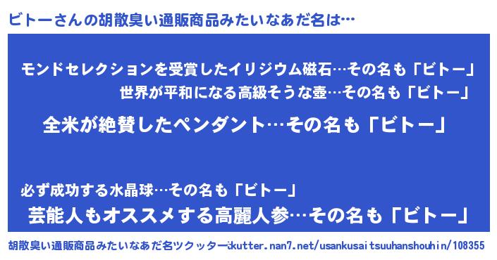 | 意味不明あだ名 | 『とにかく怪しいビトー』『自称ビトー』 |