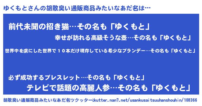 | ヒーロー風カッコイイあだ名 | 『仮面ユクダー』『ネオユクモト』 |