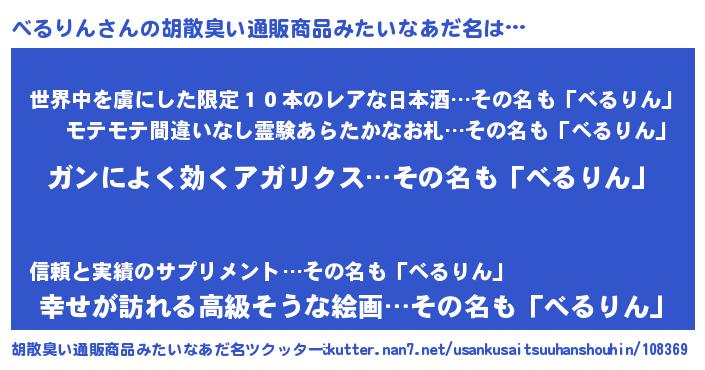| 意味不明あだ名 | 『自称べるりん』『べるりんフォーエバー』 |